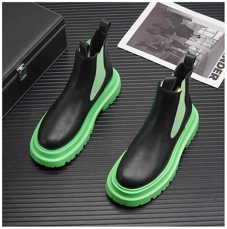 Hommes de luxe mode fête bal haute chelsea bottes automne hiver chaussures noir blanc cowboy plate-forme botte en cuir original botas homme