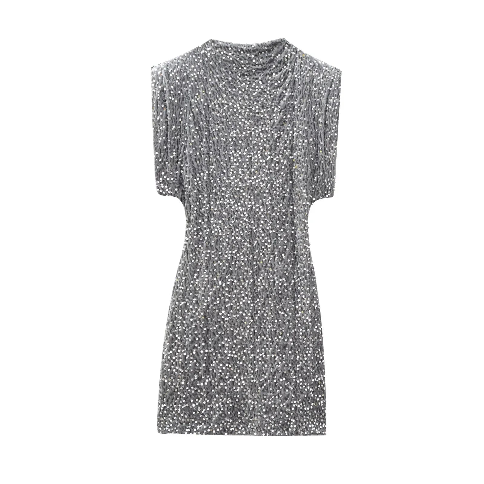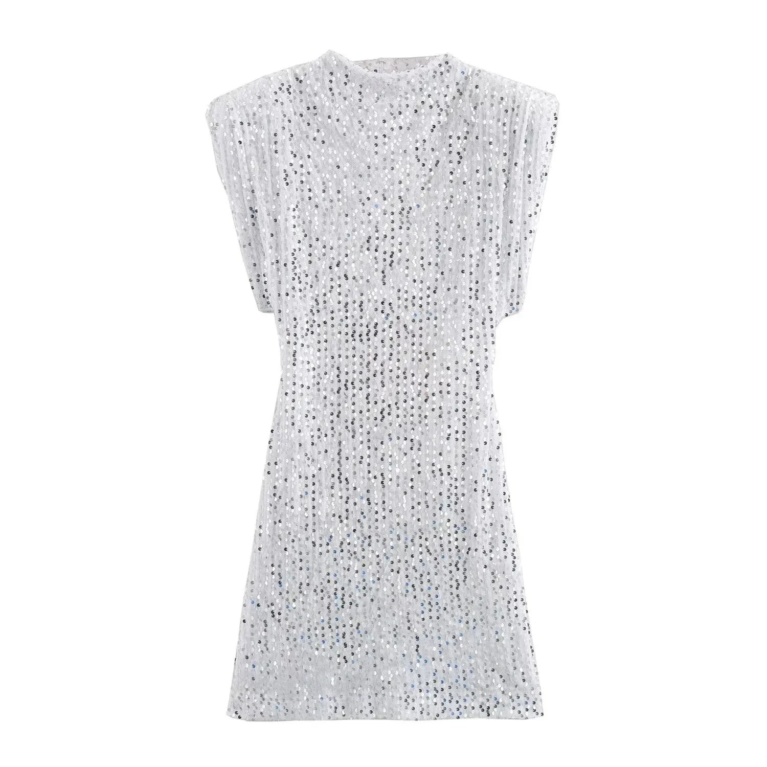 KONDALA 2025 femmes robe de soirée à paillettes épaulière gaine Mini robe sans manches discothèque fête femmes robes chics élégantes